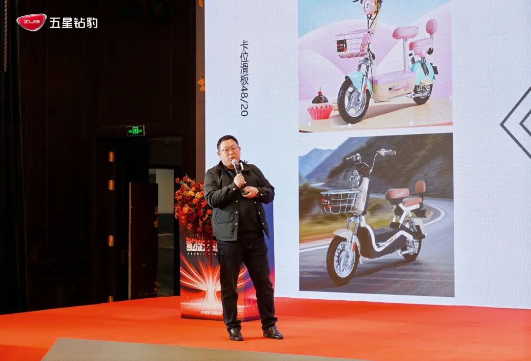 随后,五星钻豹集团产品中心副总监徐旭围绕价值差异化与品质底线两大维度,进一步阐释了产品策略的落地路径。南方市场聚焦小巧时尚的滑板车型,以高性价比和灵动外观抢占年轻消费群体;北方市场则强化骨架车型的动力性能与敦实结构,在简易款上依然做到扎实可靠、经久耐用。